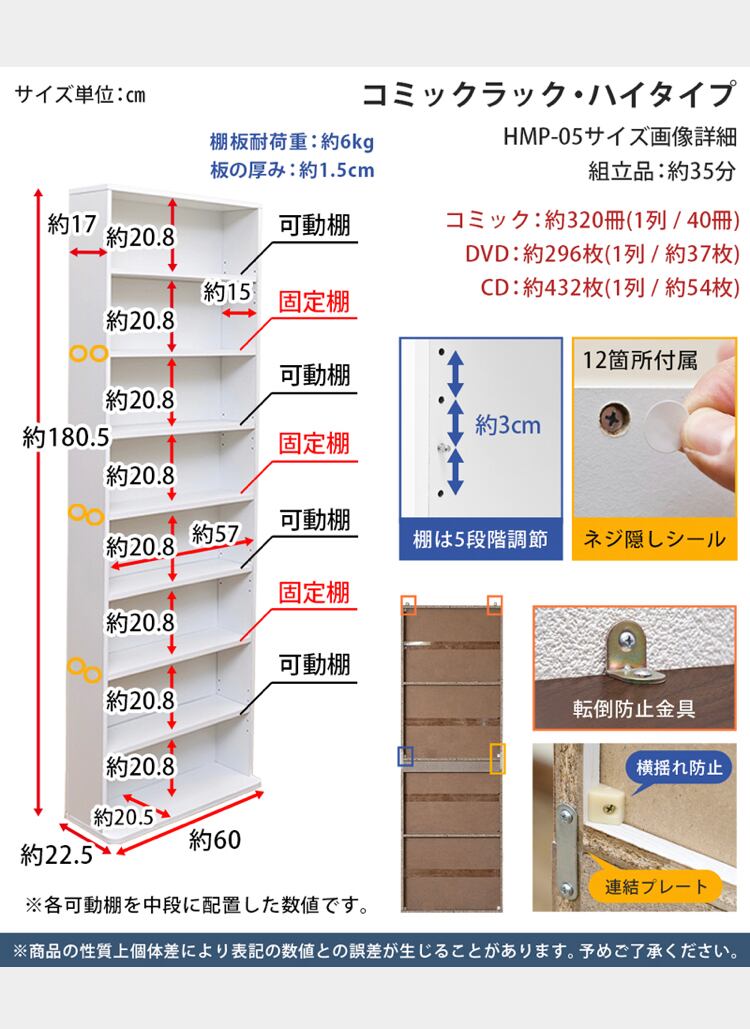 ※棚板耐荷重:約6kg