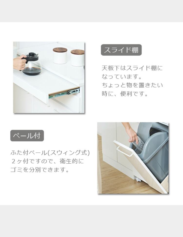 スライド棚付きダストボックス4D (ホワイト) (ブラウン)