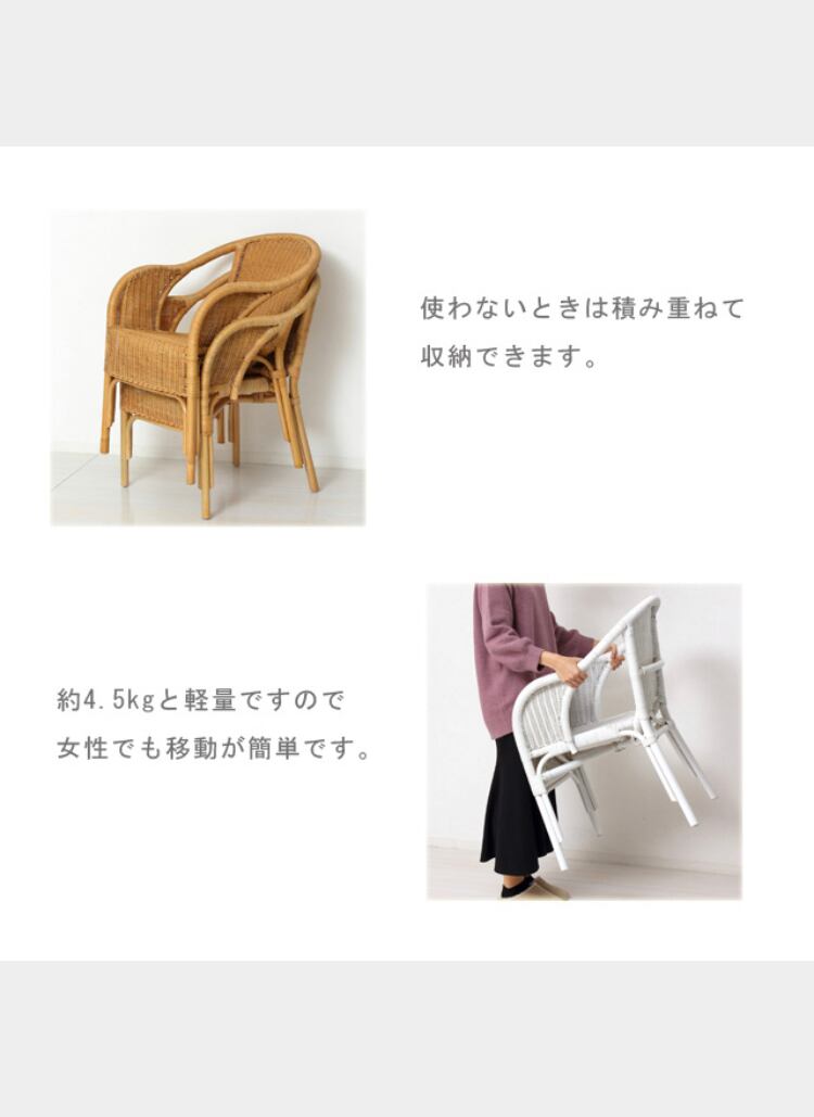ラタン スタッキングチェア (ホワイト) (ナチュラル) (ブラウン)