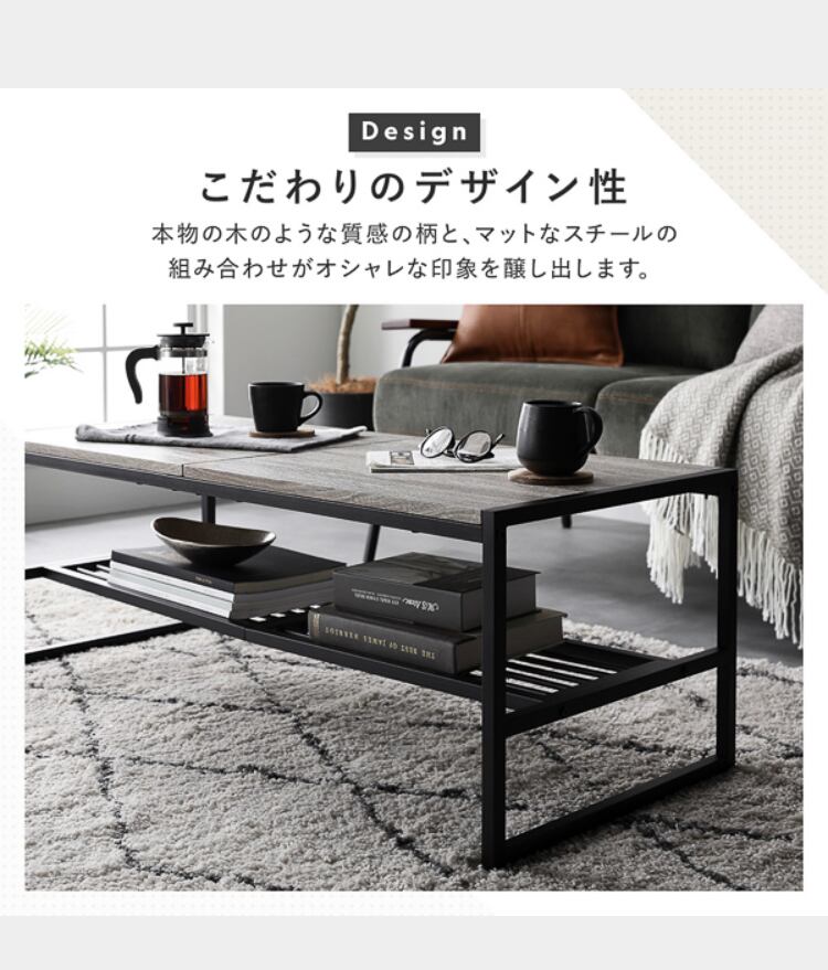 ローテーブル 単品 幅105cm 収納棚付き スチール デザイン センターテーブル インテリア家具