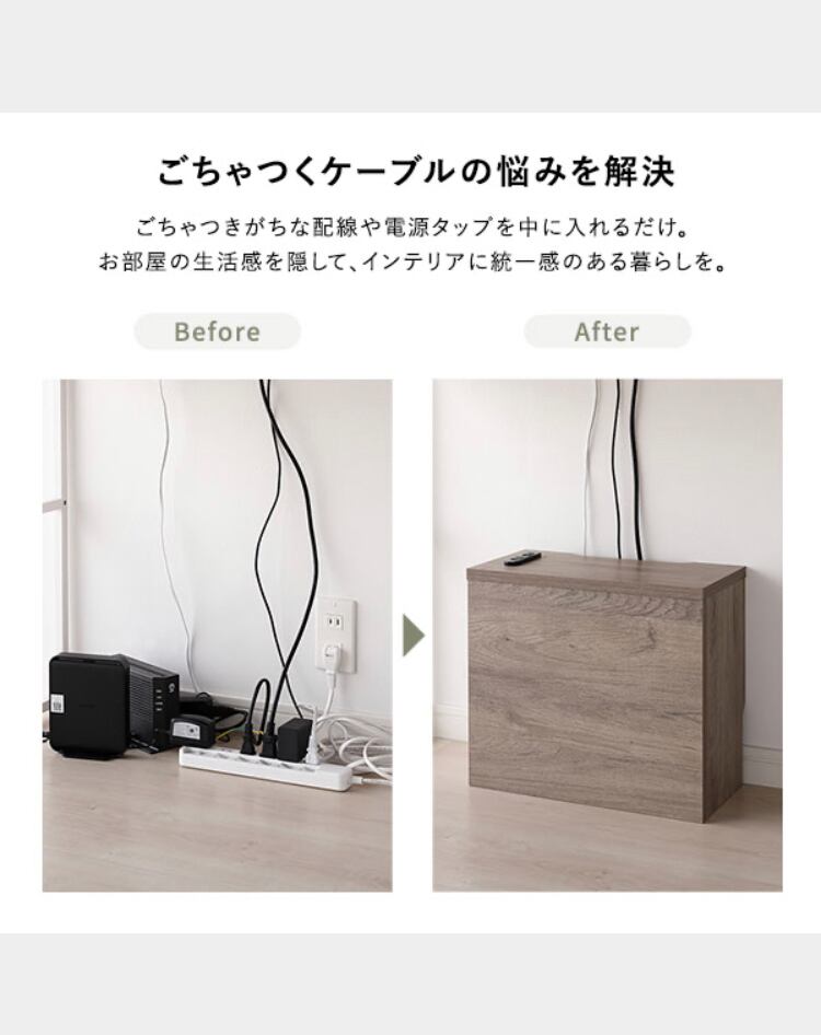 ケーブルボックス 〔 角置きタイプ 〕 幅40cm コンセント付き 収納ボックス コード収納 収納家具