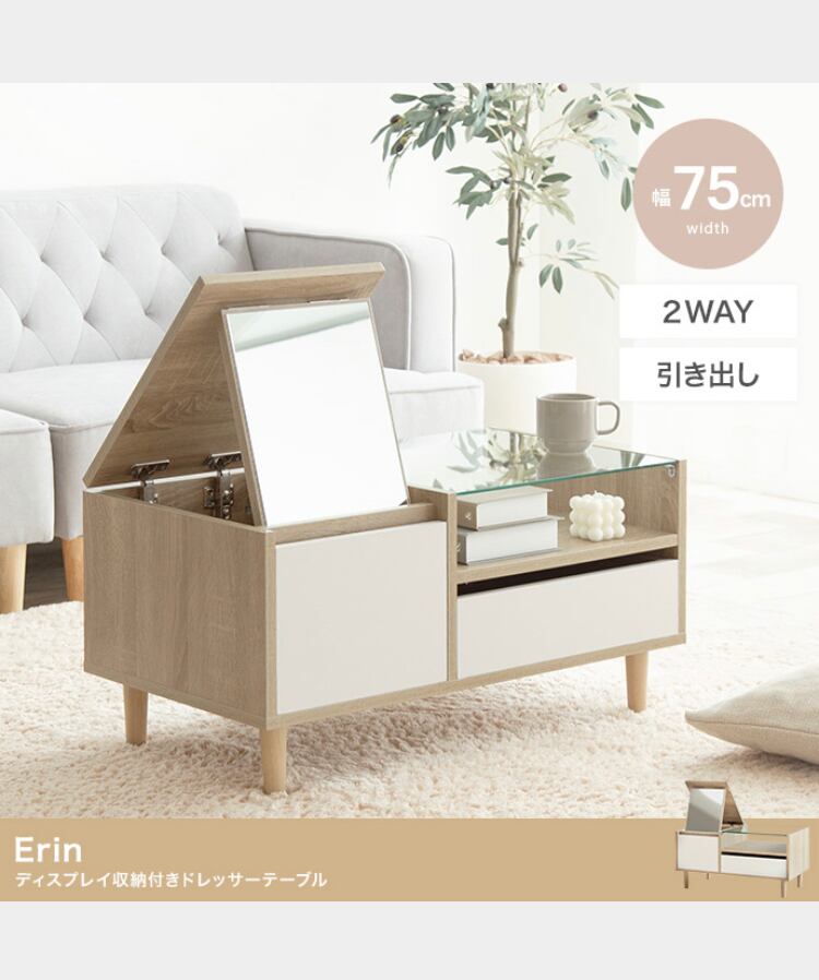 Erin ディスプレイ収納付きドレッサーテーブル