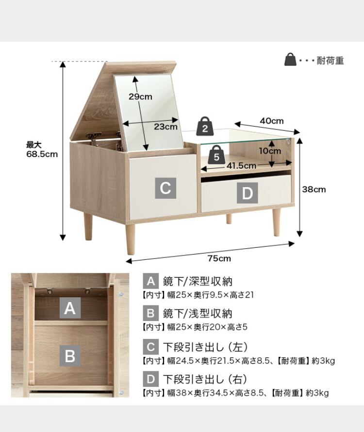 幅75cm×奥行40cm×高さ38cm