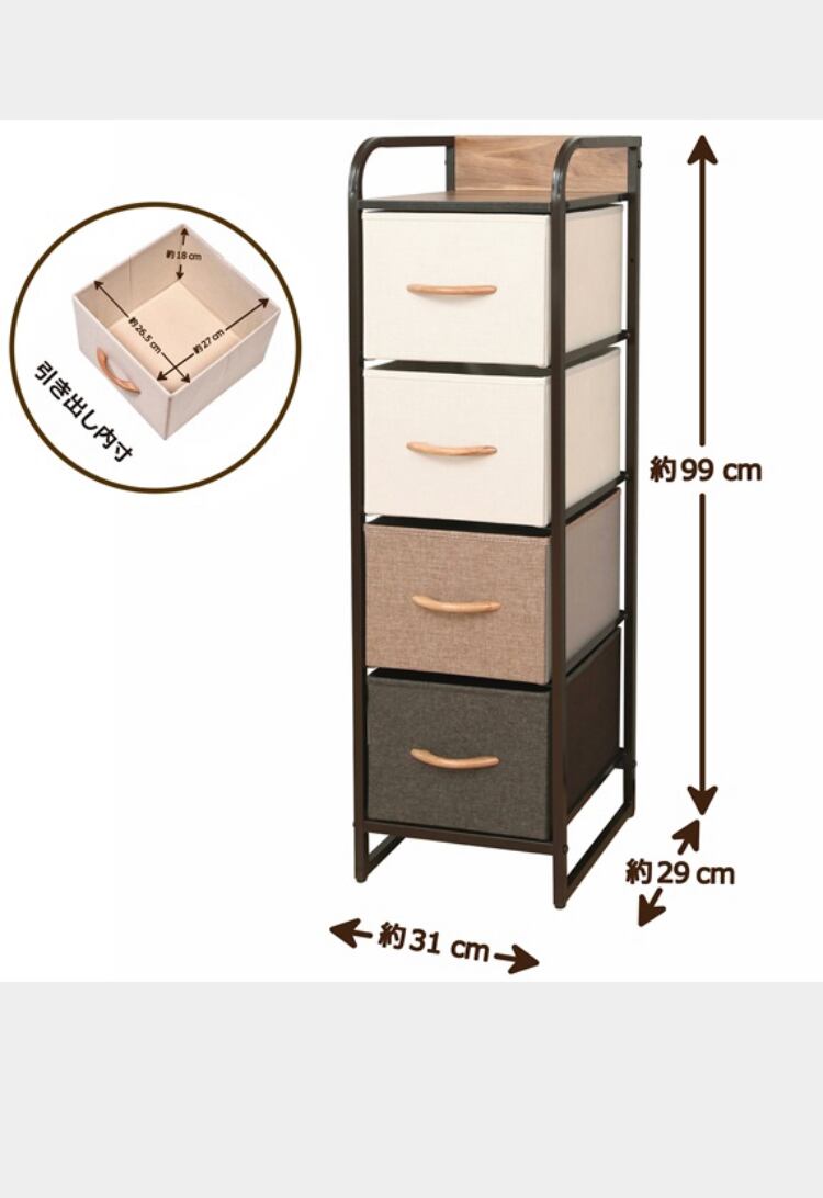 布張りカラーチェスト 4段スリム